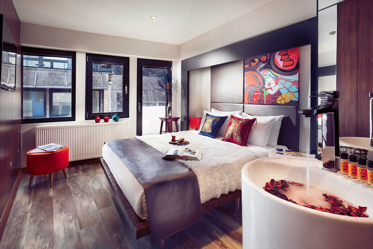 A modern city hotel with ultimate comfort and contemporary decor is what you will find waiting for you at the Duo Galata Hotel, surprising modern Turkish architecture. Located at the heart of Beyoglu District, Duo Galata Hotel is only 110 yrd from the iconic Galata Tower. Offering stylish accommodation with modern amenities and a terrace with city views. Free Wi-Fi is available in all areas and guests can benefit from the concierge desk on site. Decorated with graffiti art pieces and designer furnitures, the units at Hotel Duo Galata feature air conditioning, a flat-screen TV with satellite channels, a minibar and a safety deposit box. Some rooms come with views of Galata Tower. The en suite bathroom includes a shower, hairdryer, slippers and free toiletries. At Duo Galata Hotel, the excellent service and superior facilities make for an unforgettable stay. The excitement of the city center is only 1 km away. With its convenient location, the hotel offers easy access to the city's must-see destinations. This chic hotel is just a 15-minute walk from Taksim Square and less than 5 minutes’ walk away from Istiklal Street’s shops, cafés and restaurants.
